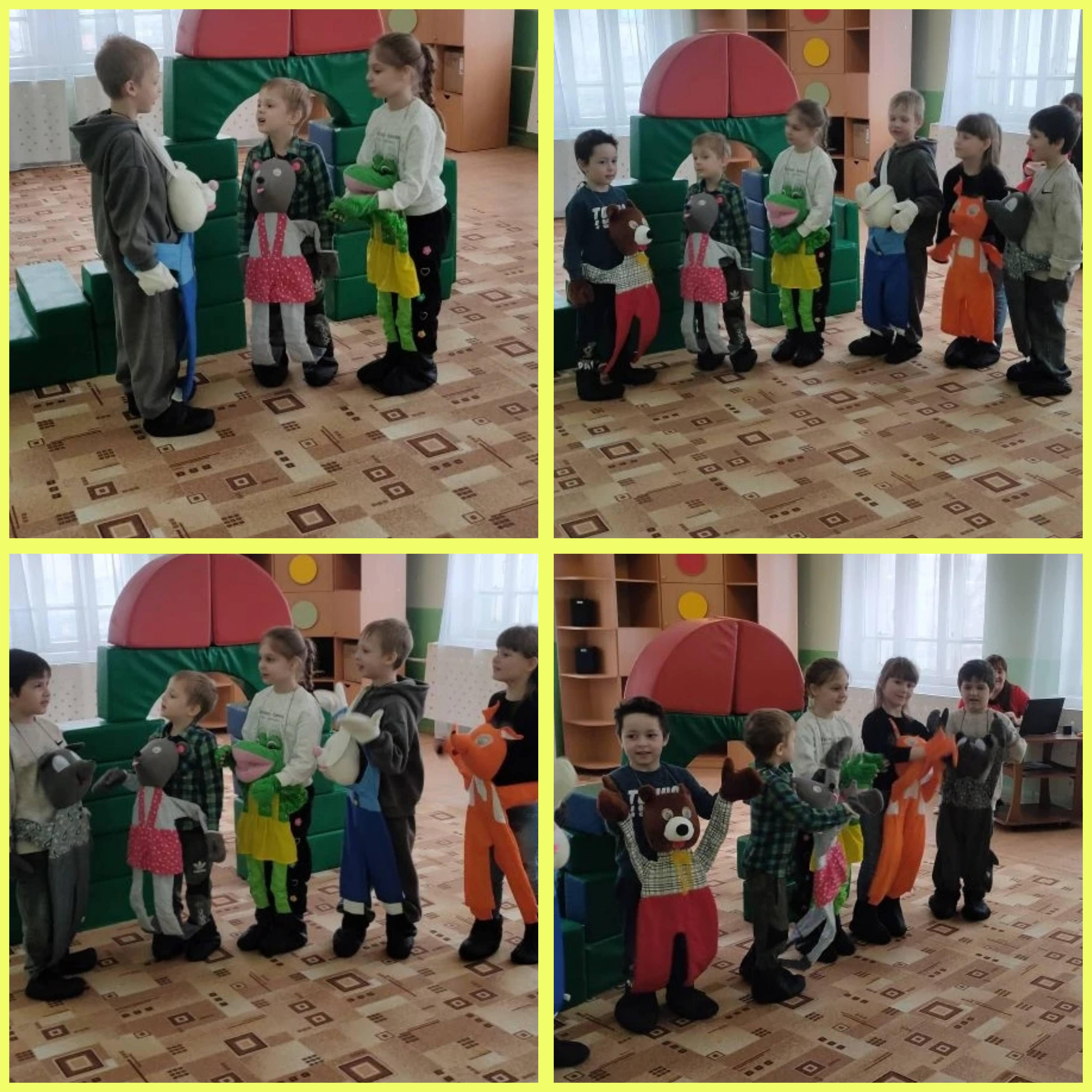 Для маленьких зрителей ребята из старших возрастных групп "Жар птица" и "Смешарики" подготовили особенный сюрприз — инсценировку сказки «Теремок на новый лад». Юные актёры продемонстрировали отличную командную работу, артистизм и фантазию: знакомая история заиграла новыми красками благодаря современной интерпретации и творческим находкам ребят.