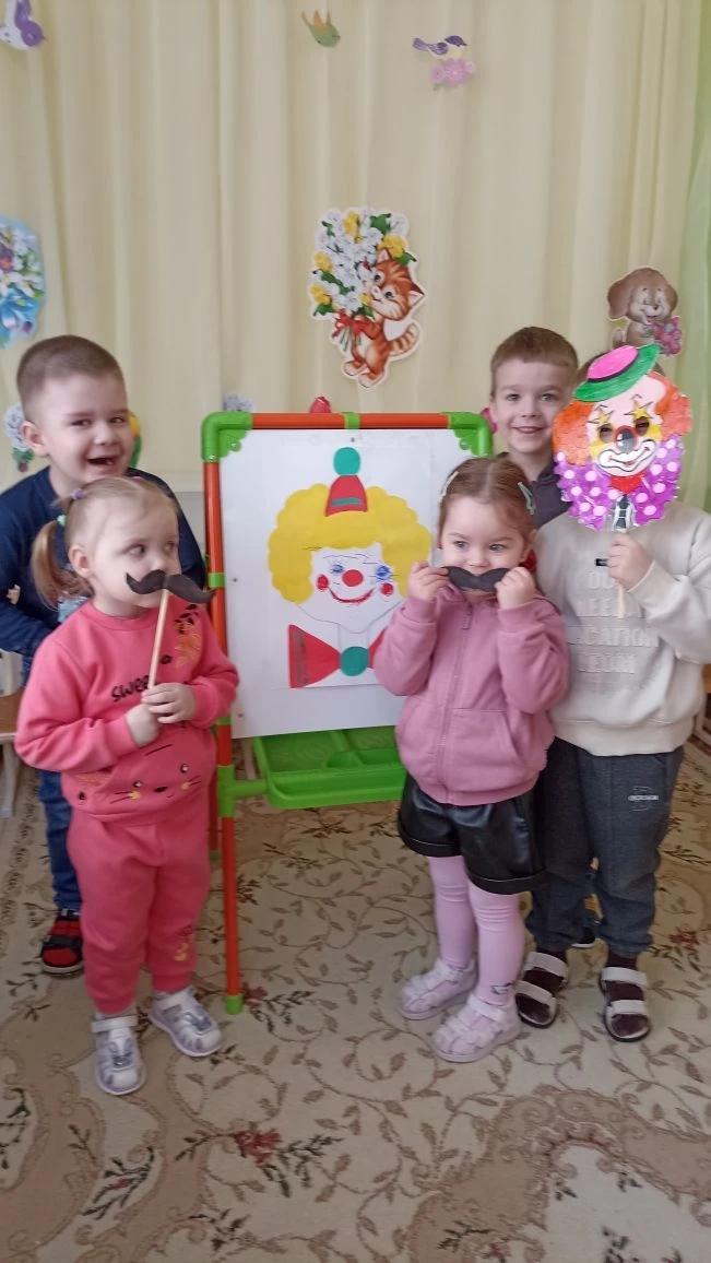 В этот день ребята с удовольствием примеряли на себя забавные маски, превращаясь в сказочных и мультяшных героев. Особенно всем запомнилось творческое задание — рисовать портрет клоуна с закрытыми глазами: получилось очень смешно и необычно! В течение дня дети слушали весёлые песни, участвовали в играх и конкурсах, делились друг с другом улыбками и хорошим настроением.
